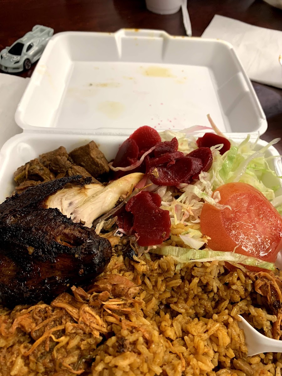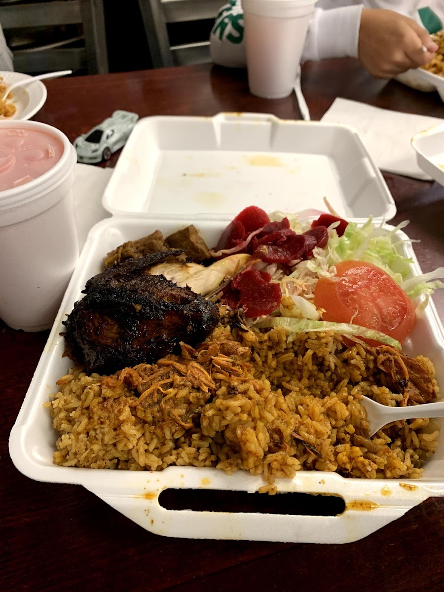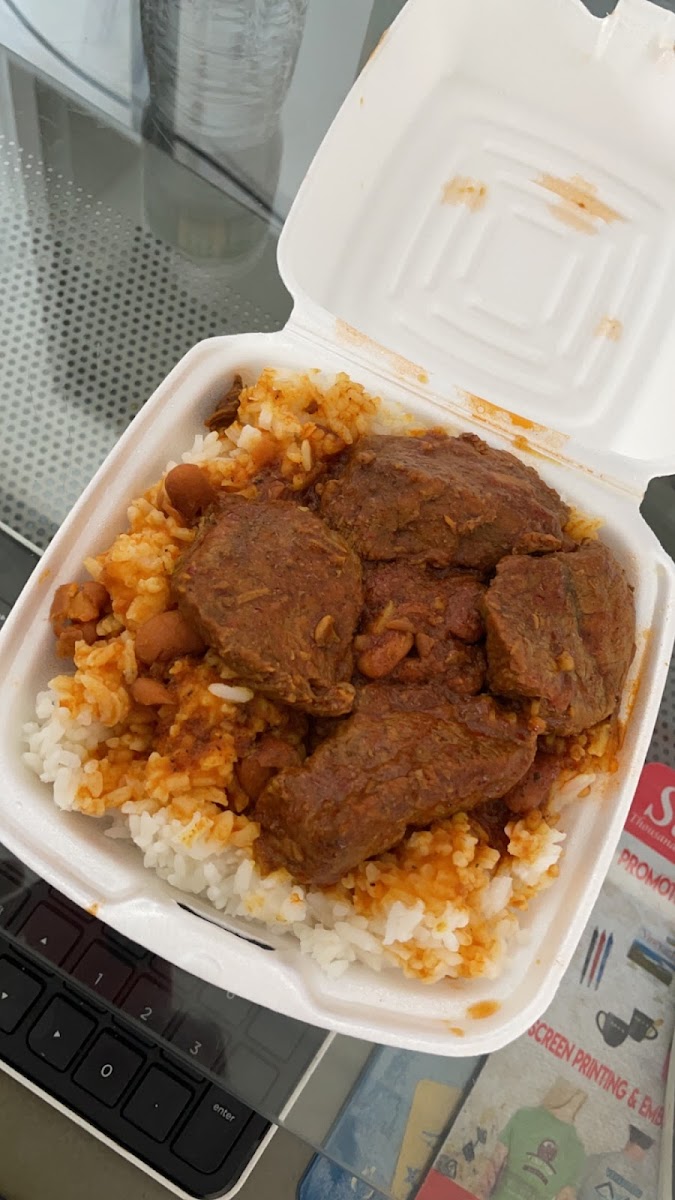 Been eatimg here for 10+ years I love the stew chicken with extra sauce on my rice and beans $8 plate